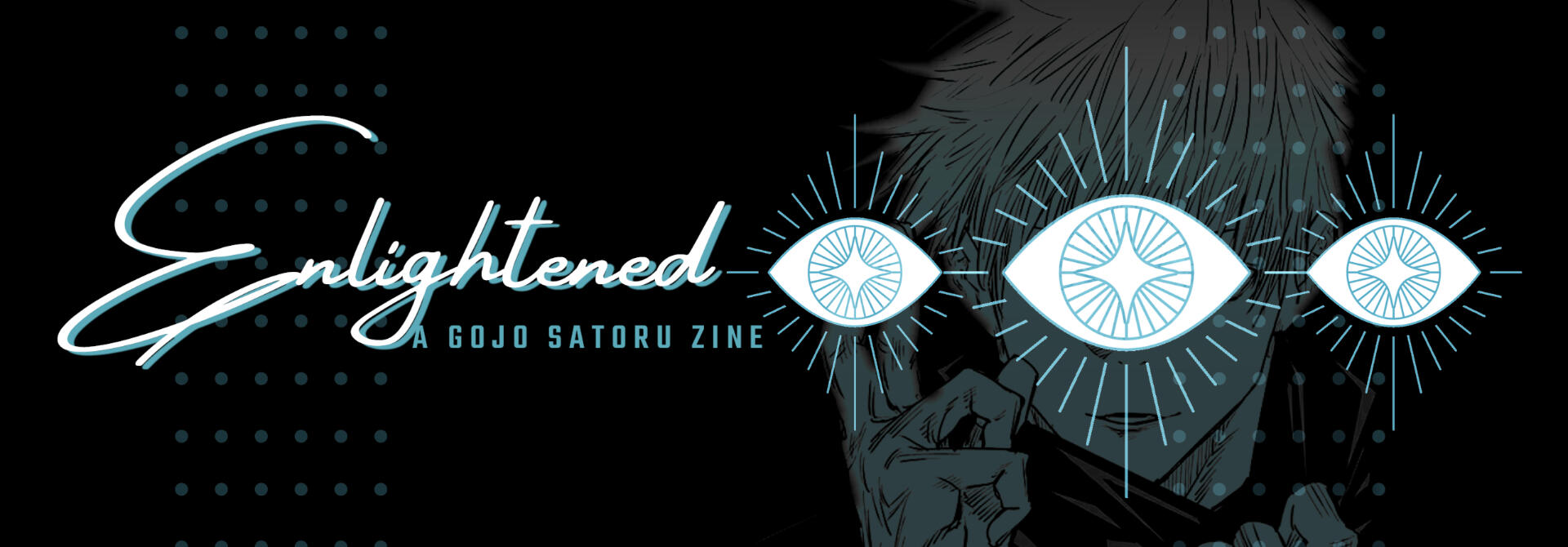 Enlightened: A Gojo Satoru Zine is a SFW, non-profit, Jujutsu Kaisen project highlighting the strongest jujutsu sorcerer in Tokyo, Gojo Satoru! Our aim is to explore Gojo’s character and chronicle his life from his childhood, life as a student, and at present as a mentor at Jujutsu Tech.
